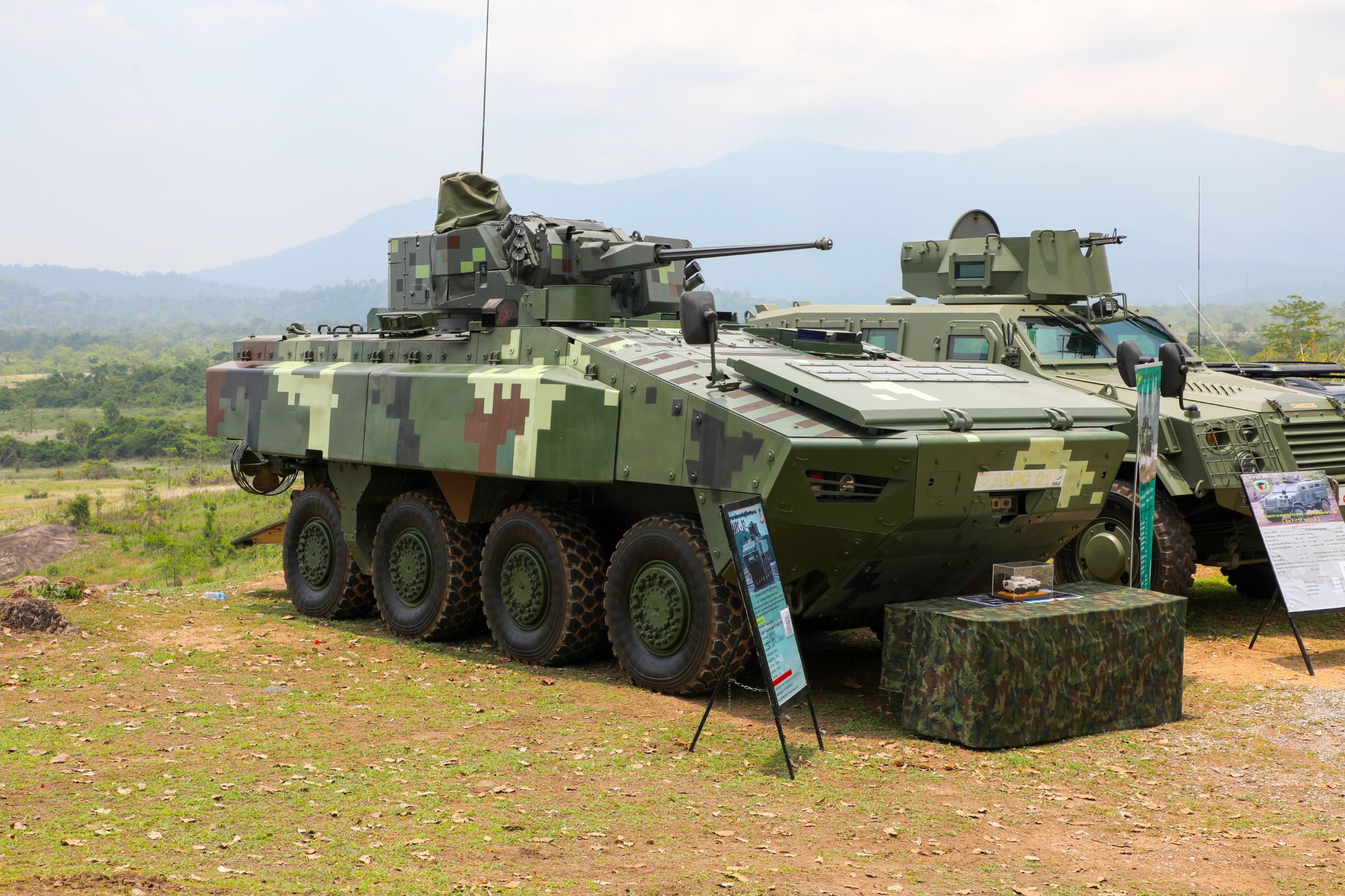ยานเกราะล้อยางพยัคฆ์ทะเล AAPC 8X8 รถยังถูกจัดแสดงข้างรถหุ้มเกราะอเนกประสงค์